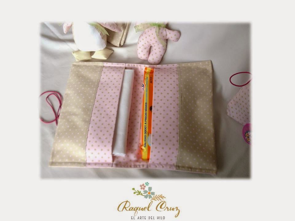 Aquí se puede ver la bolsita-neceser para poner los pañales y las toallitas húmedas.