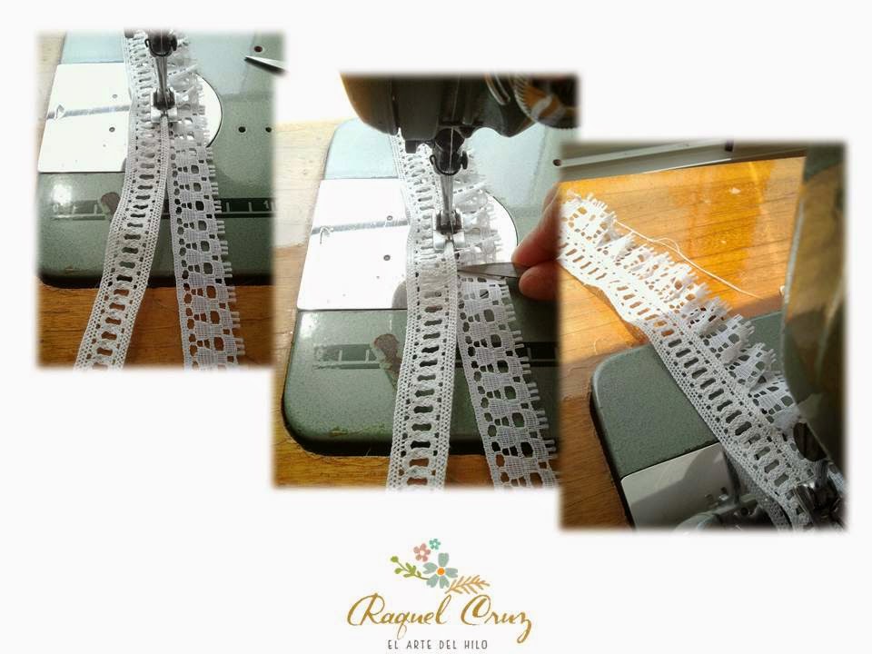Primero he unido la puntilla al pasacintas, de ésta manera que muestro a continuación...