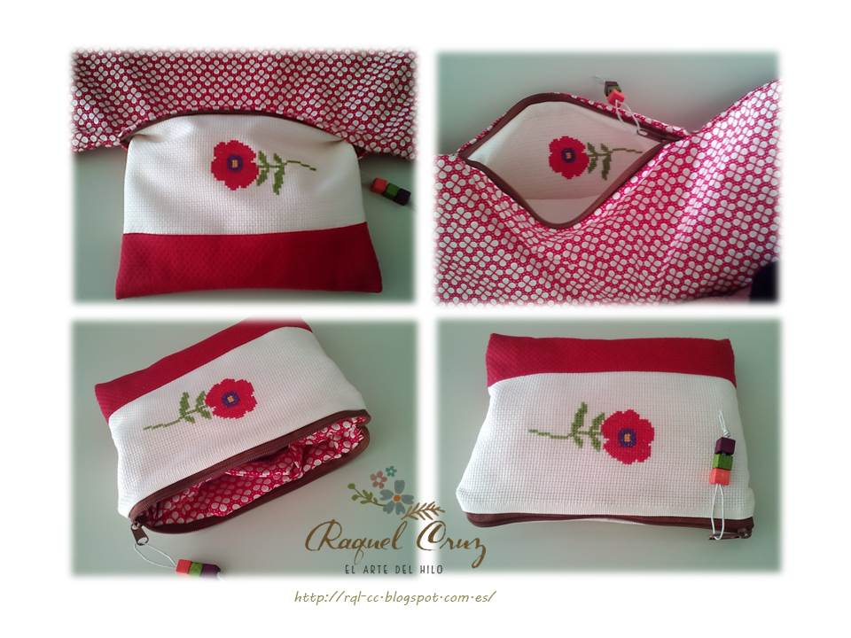 En mi versión el bolsillo lo he bordado con una flor roja a punto de cruz.