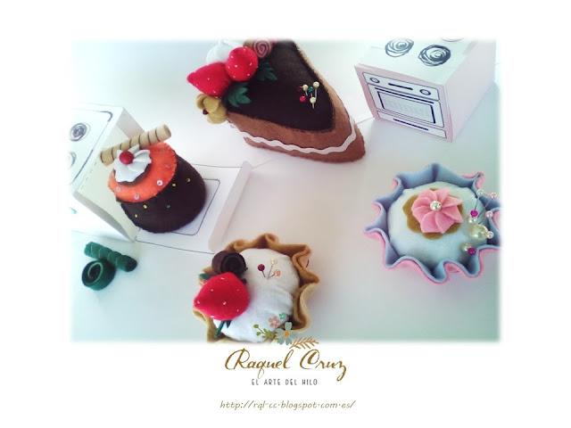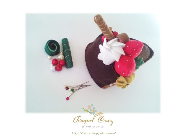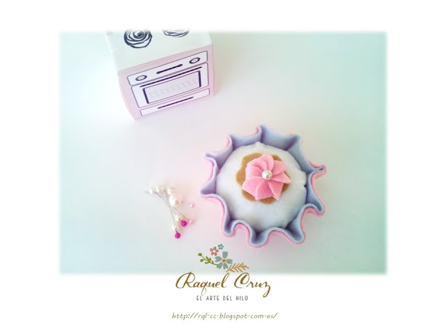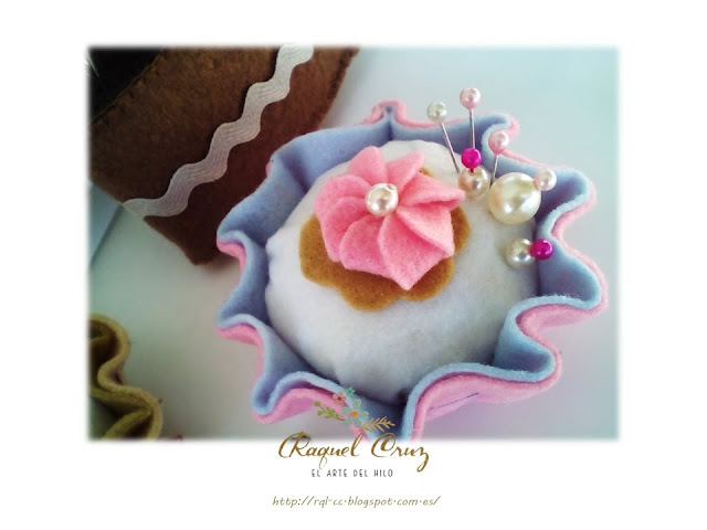 Este mes consistía en la realización de un acerico, o alfiletero en fieltro con las forma de pastelito, magdalena... o también llamado "CupCake" (que modernos que nos estamos volviendo)...jeje