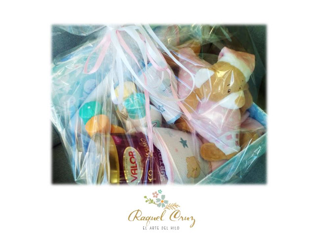Ya terminamos con la realización de esta canastilla con el montaje en una cajita con bonitos motivos y los cuales nos han servido de inspiración para hacer los detalles bordados de los baberos.