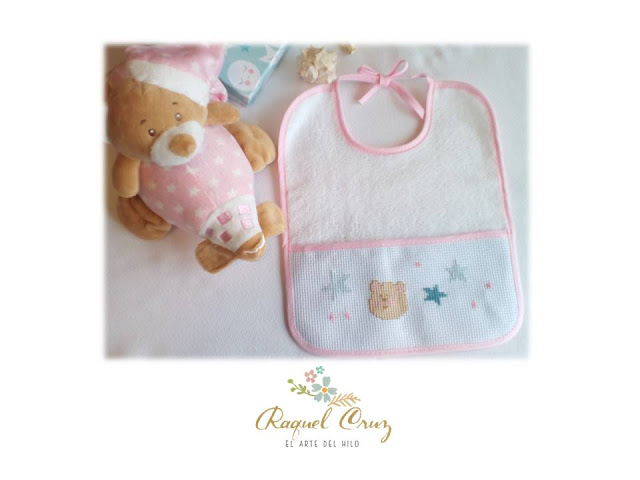 Seguimos con el bordado infantil, y como no podía ser de otra manera de nuevo para un babero muy mono.